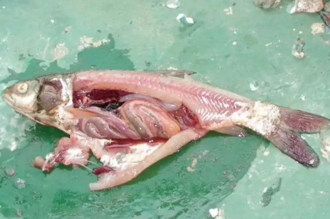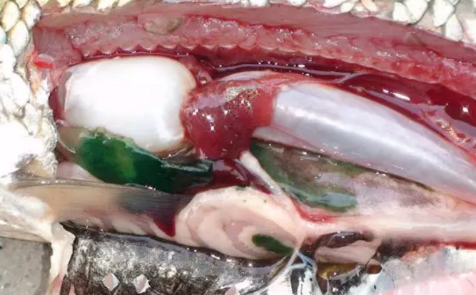 患“肝胆综合征”草鱼呈现“豆腐肝”,胆囊肿大