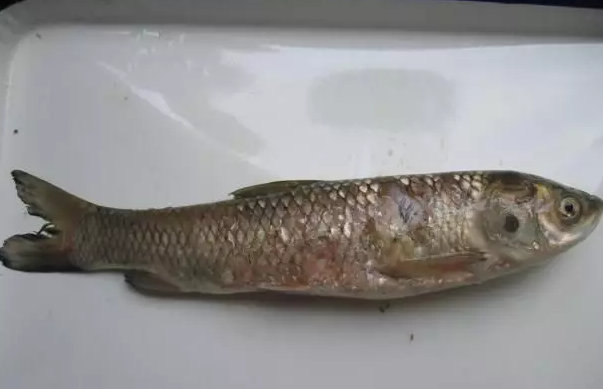患细菌性疾病的草鱼鳃部腐烂成泥,尾鳍发红