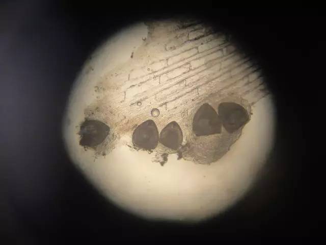 【病原】钩介幼虫(Glochidium),是软体动物双壳类蚌的幼虫。虫体略呈杏仁形(图1),有2片几丁质壳(图2),每瓣壳片的腹缘中央有个鸟喙状的钩,钩上排列着许多小齿,背缘有韧带相联(图3)。